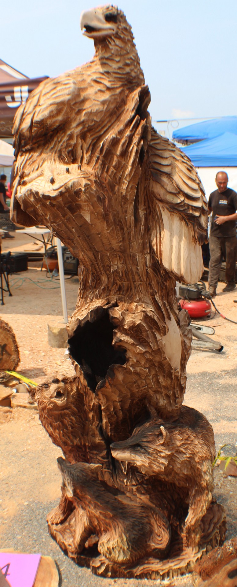 Our 27th Annual Chainsaw Carving Championship features the best competitive carvers in the Nation. This is an invite only Chainsaw carving showcase that has daylong events starting on July, 3rd 2024 to July, 6th 2024 from 8am to 5pm there is an intermission for the Quick Carve at 1:30pm to 2:45pm. At that time the Carvers switch from working on there Master Piece to a Head-to Head competition that is started and finished in that hour and fifteen minute that produces awesome works of art that can be bid on and won. There are other carvings that are able to be purchased during the 3 day celebration. Check our schedule for starting times and award ceremonies.