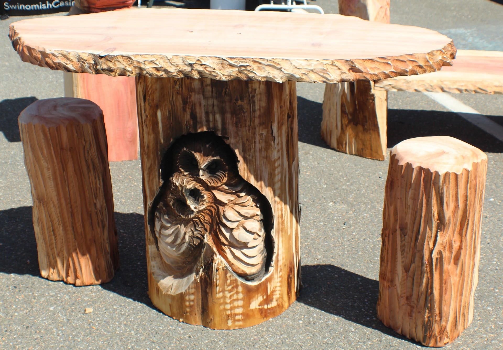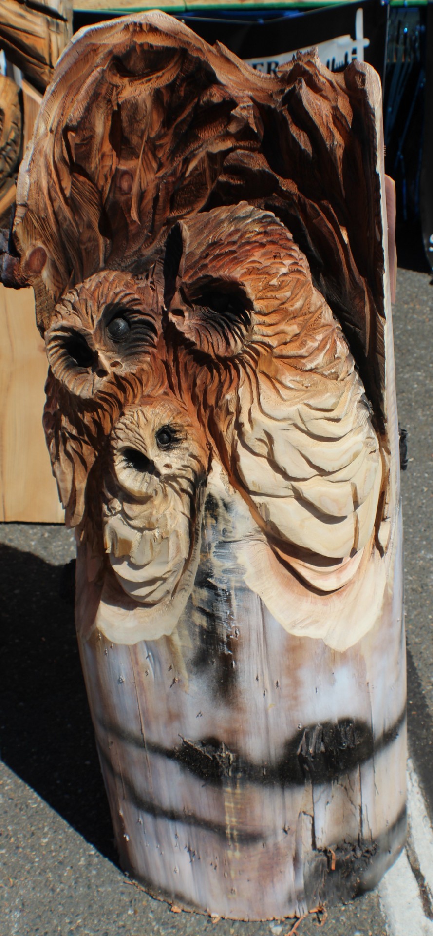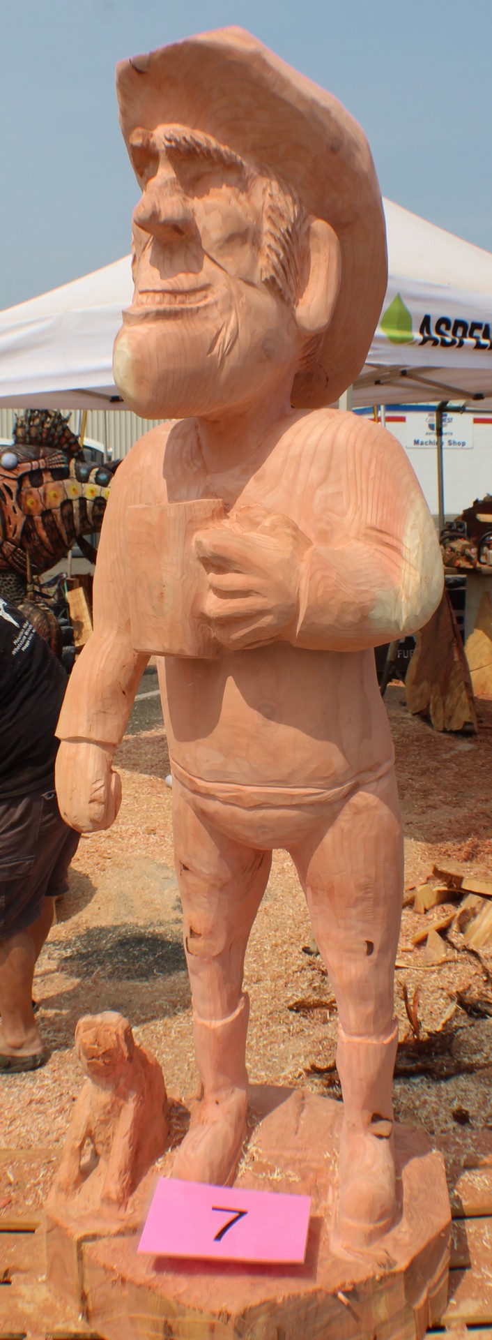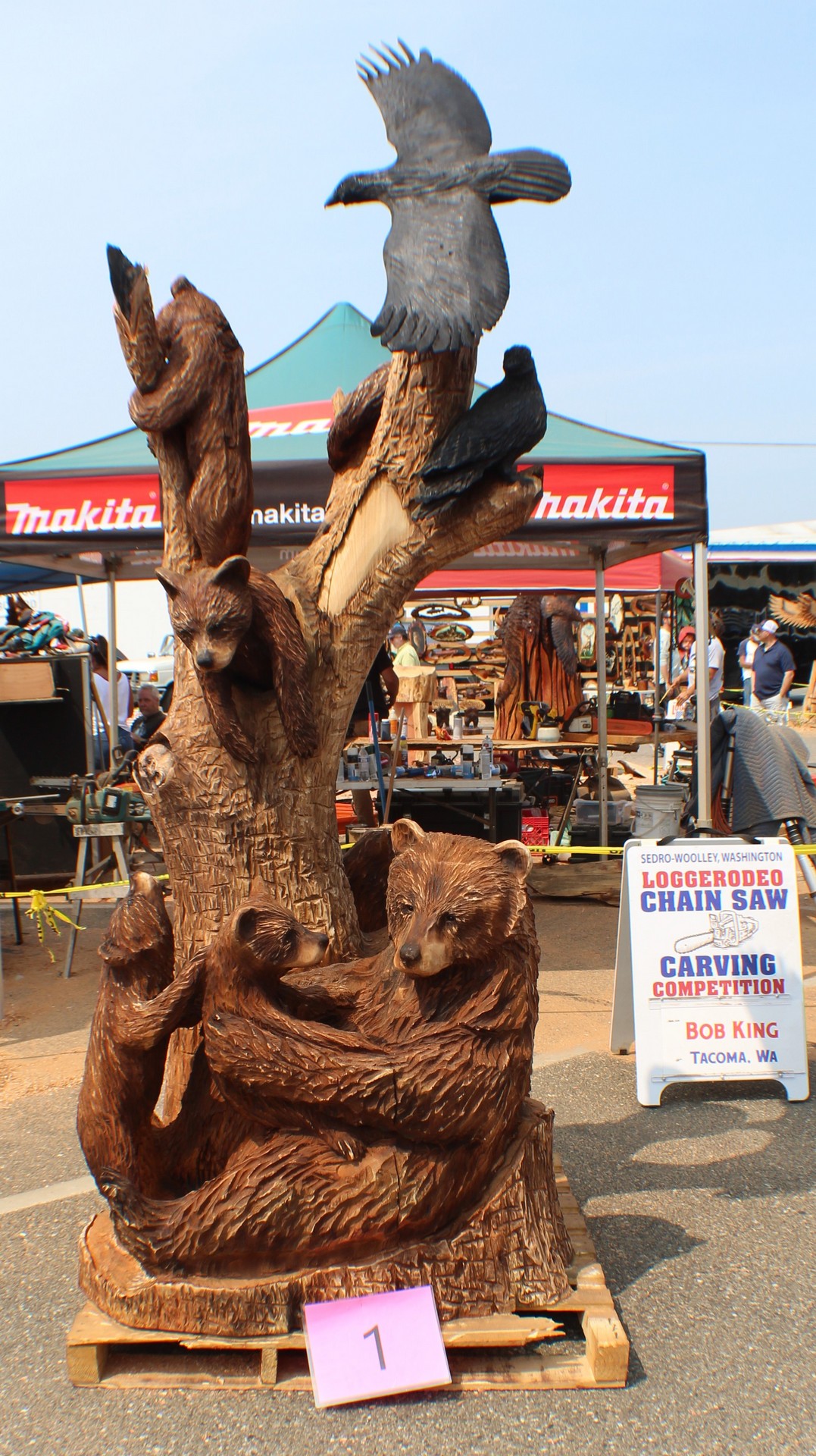 The Quick Carve Competition is a one hour fifteen min head to head fast paced competition. The carvers can make up to 2 carvings in this 1 hour and 15 minutes and at the end all items are bought to the stage and an auction is held every day at 5pm except for the last day it is held at 3:15pm. Bidder numbers can be obtained at the right of the stage where the Loggerodeo™ apparel is sold and are good for the entire event. At the end of the festivities the is an award for the carver that made the most during the Quick Carve auctions. There has been some awesome works of art created during this time.